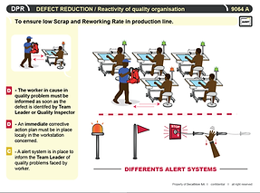 A famous system to alert and stop the production immediately is the Andon system. An Andon accelerates the information flow related to slowdowns and stops of the production system. Most famous is probably the Andon cord. This is a rope hanging from the ceiling. If the operator encounters a problem, he pulls the rope, which gives a signal to the Andon that there is a problem. Usually a second pull cancels the signal and tells the Andon that the problem is solved.